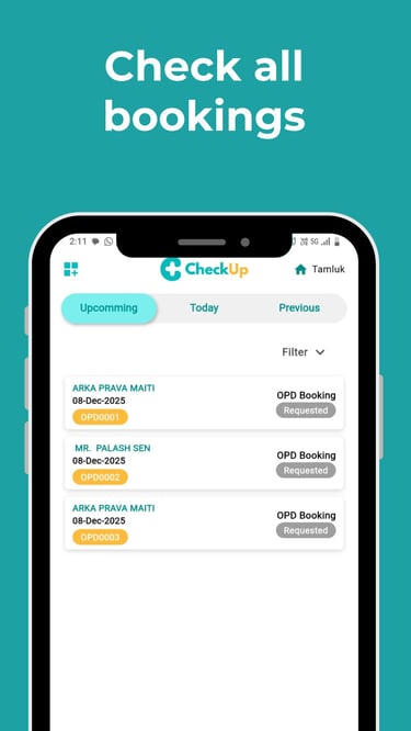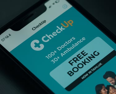 CheckUp is a one-stop health solution for patients. CheckUp facilitates doctor's appointment booking at the comfort of your home. It also enables features like queue tracking and search by symptoms.